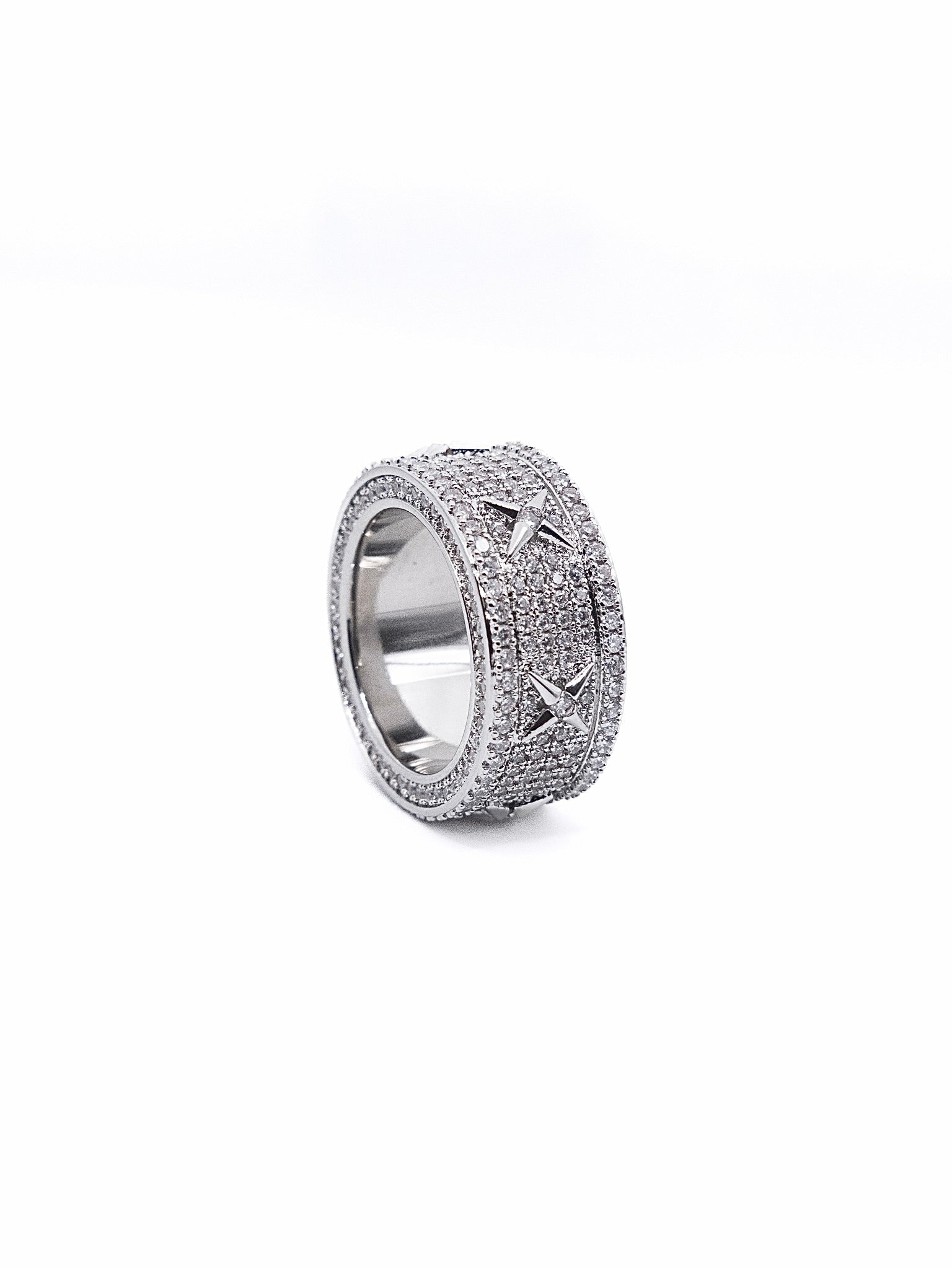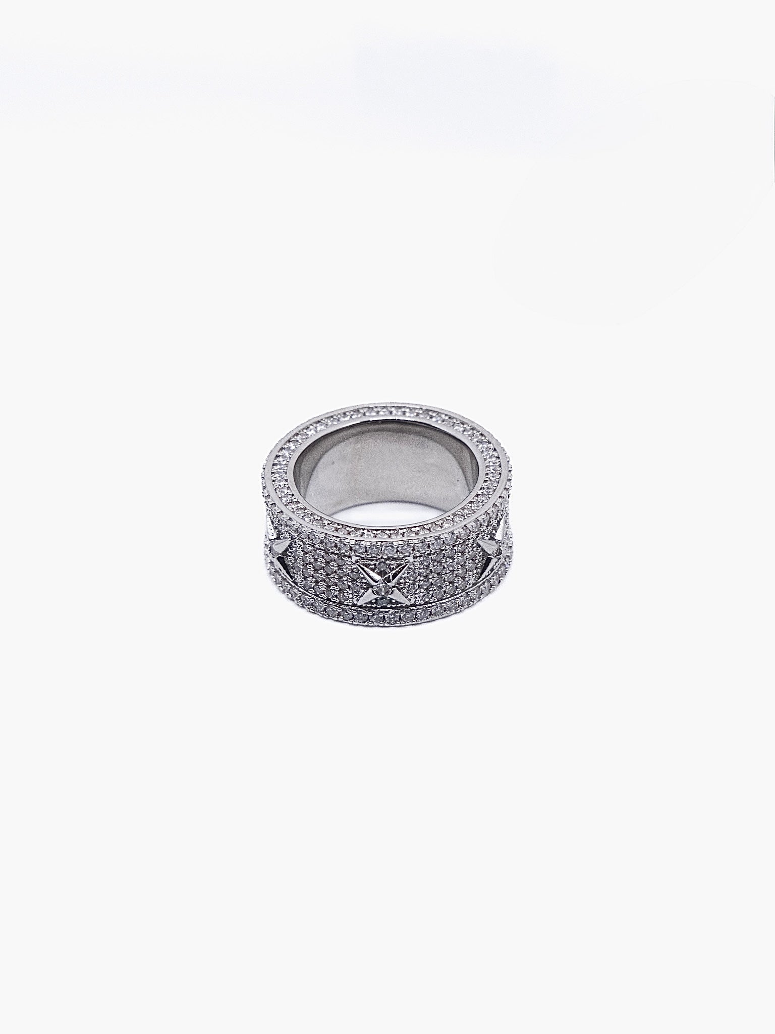 A chunky, flat-faced band with embossed stars. Neutral styling to elevate any look