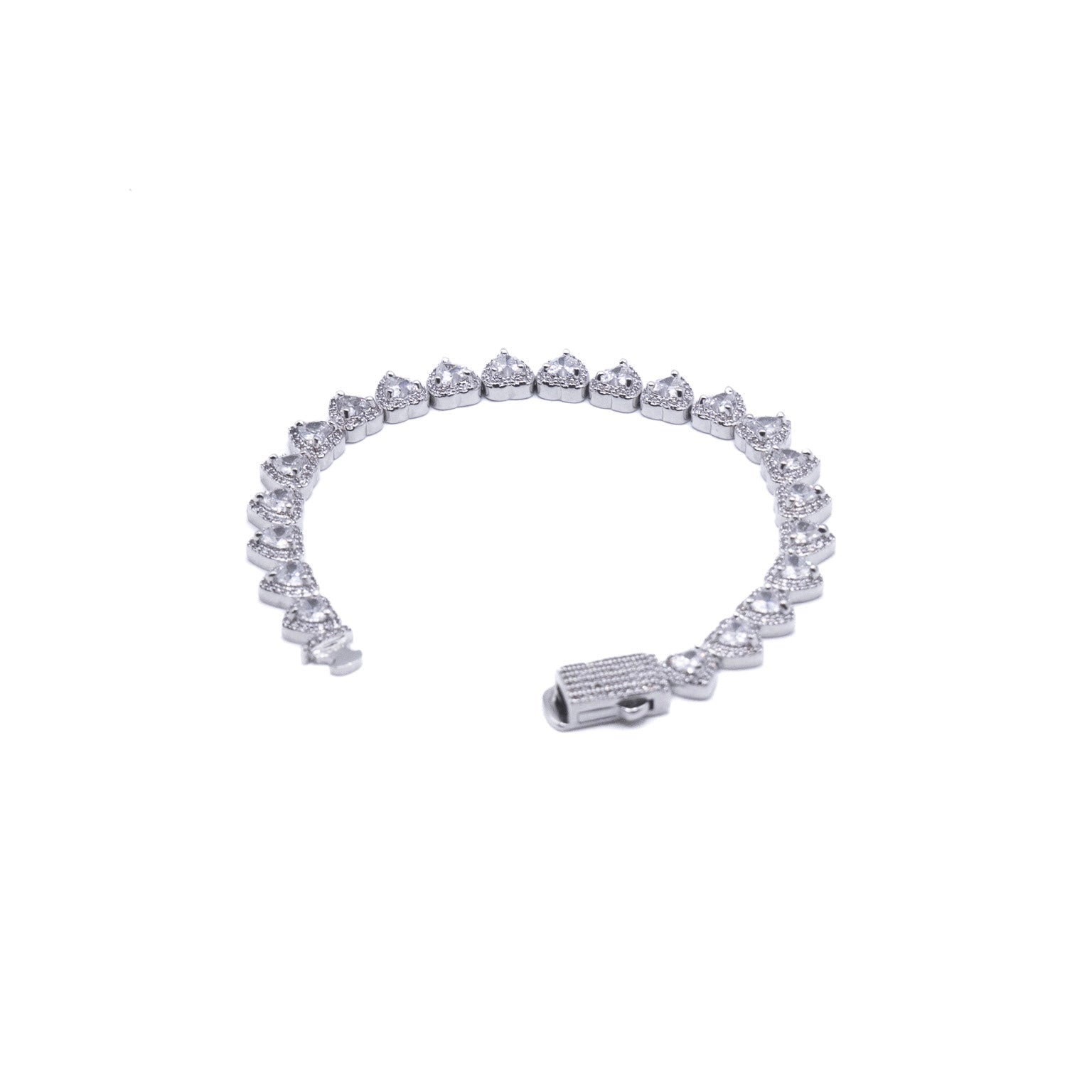 Classic heart-set CZ stones line a flexible yet sturdy tennis construction. Designed for fluid movement and subtle sparkle, it's ideal for layered styling.