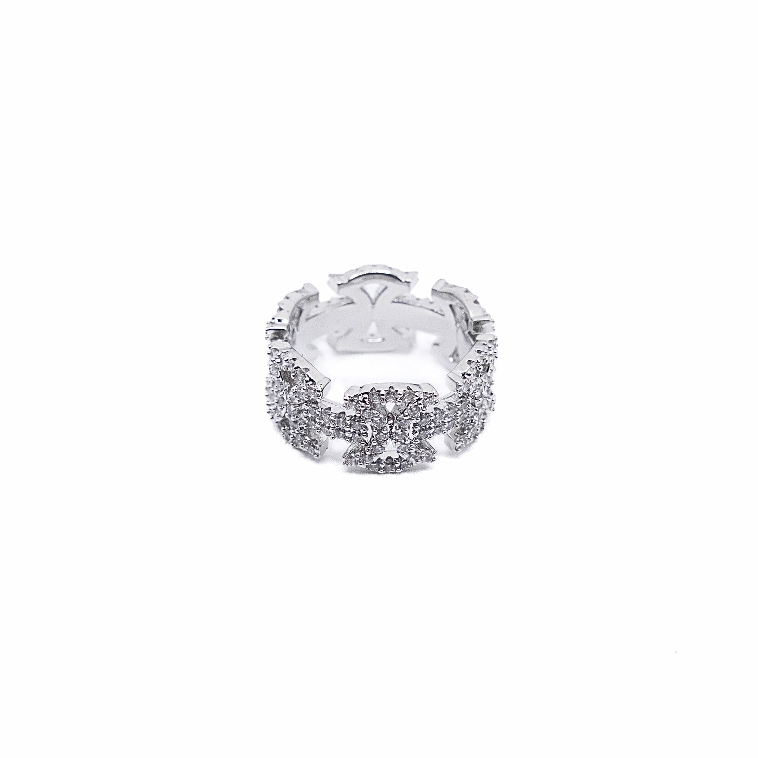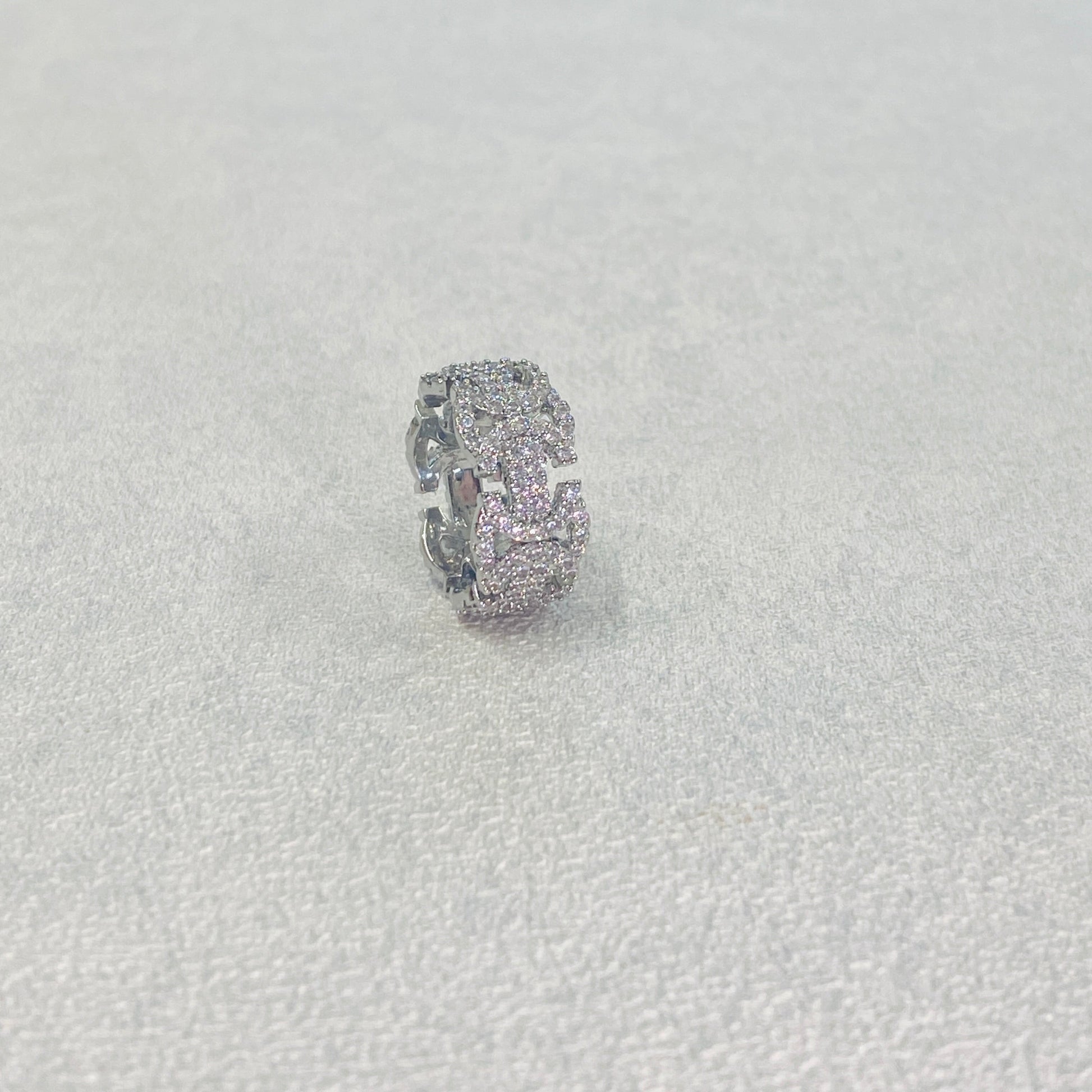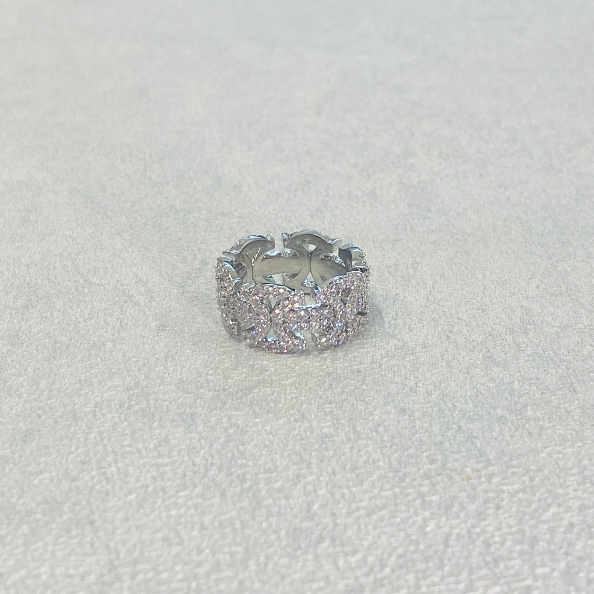 The ring features a continuous row of sparkling CZ clusters, arranged to create a crown like silhouette around the band. A multi-stone brilliance which delivers luxurious dimension to any wardrobe.