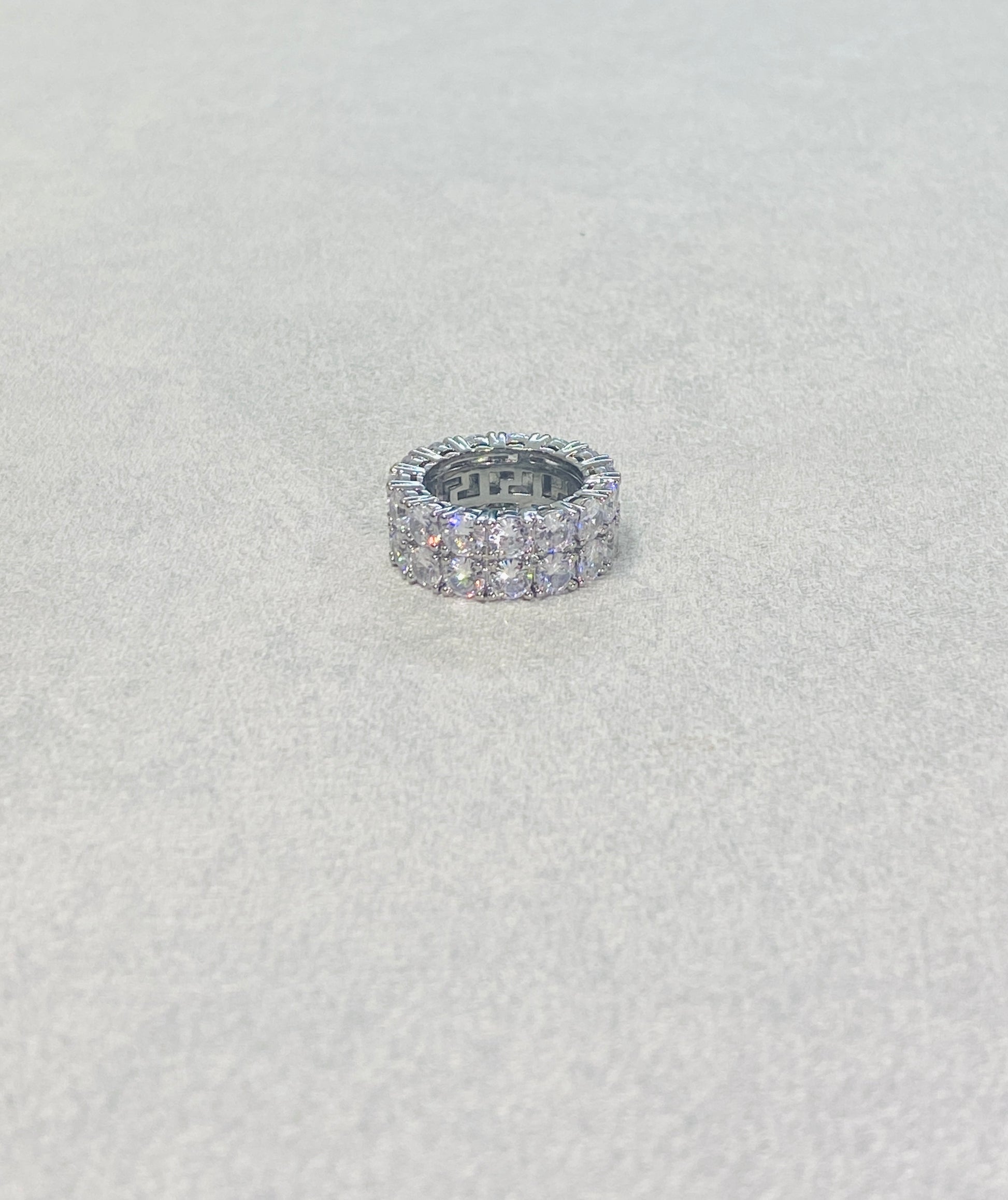 Exude timeless elegance with the double row of brilliant CZ stones set in a stunning silver tone band . The inner band showcases sleek pattern. Crafted for those who desire an everyday high end sparkle addictive .