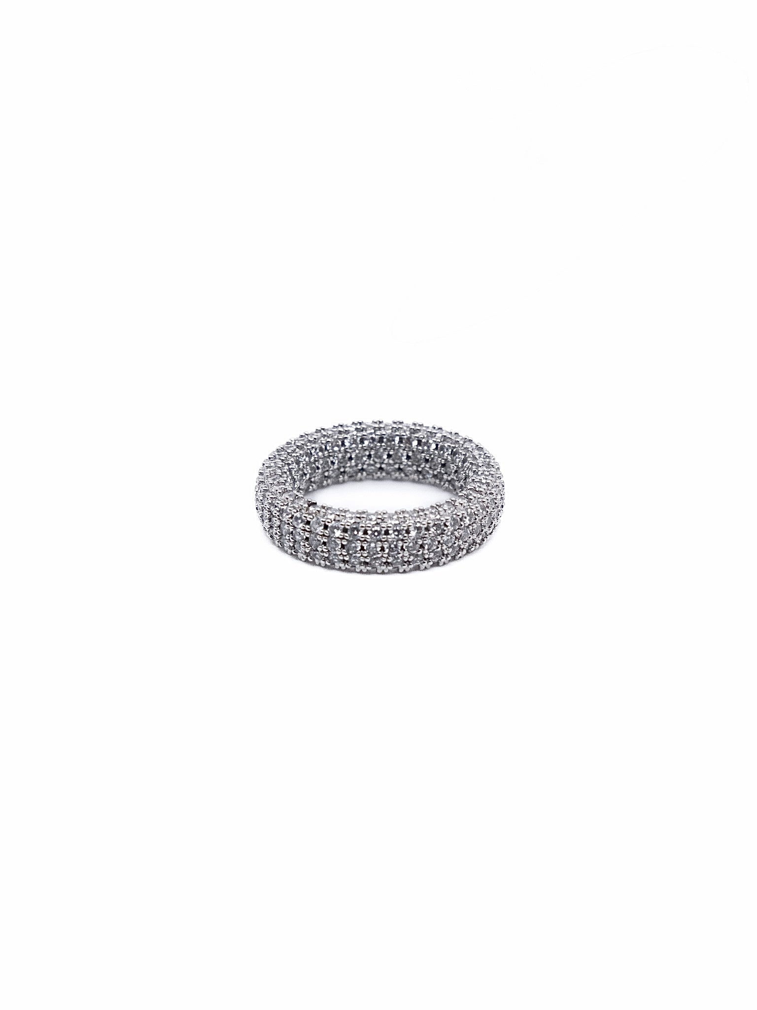 Covered in brilliant CZs, the eternity band glows from all angles—ideal for everyday glam or layering.