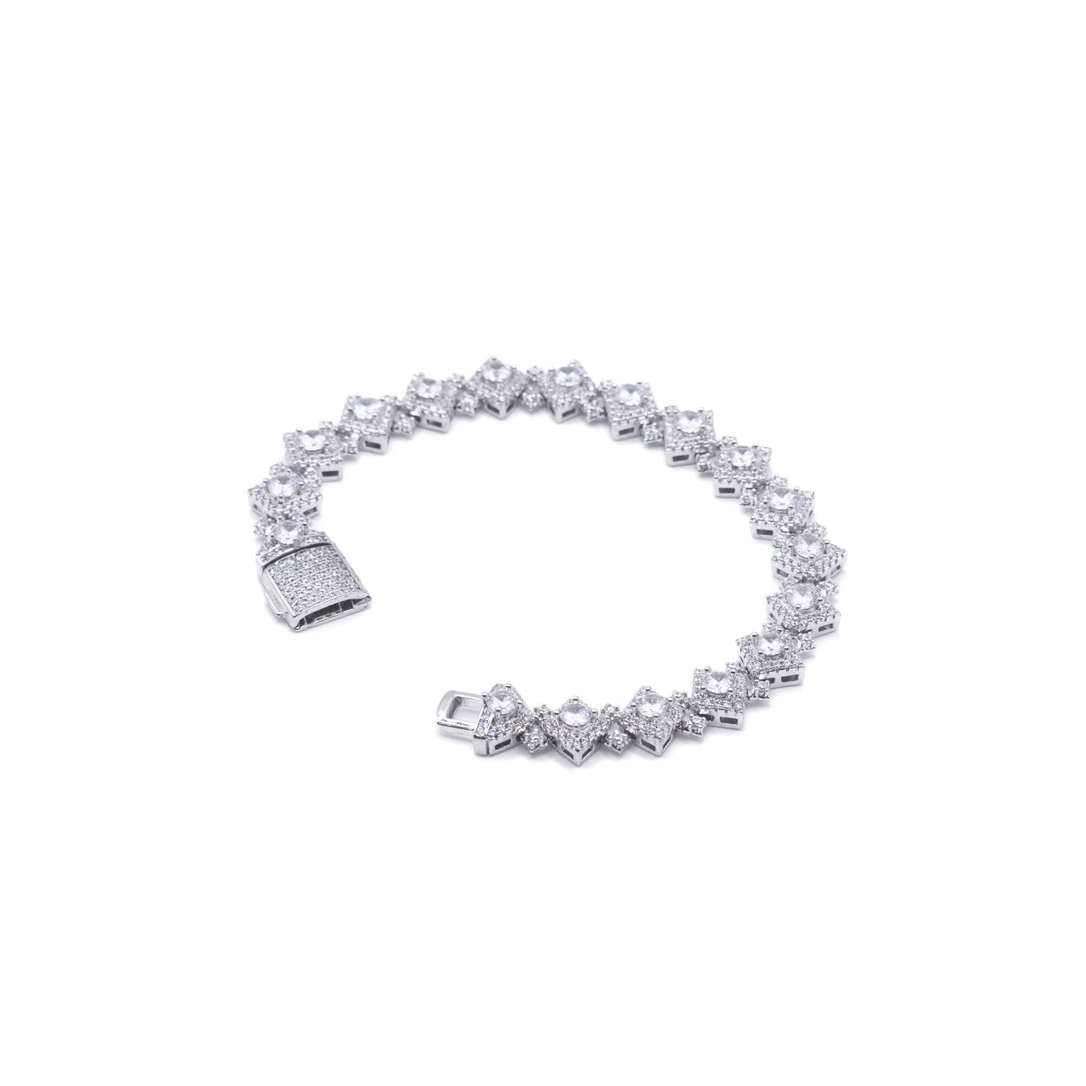 Features tightly aligned CZ stones on an articulated frame for flexibility and comfort. Its precise construction adds structure to any layered wrist stack.