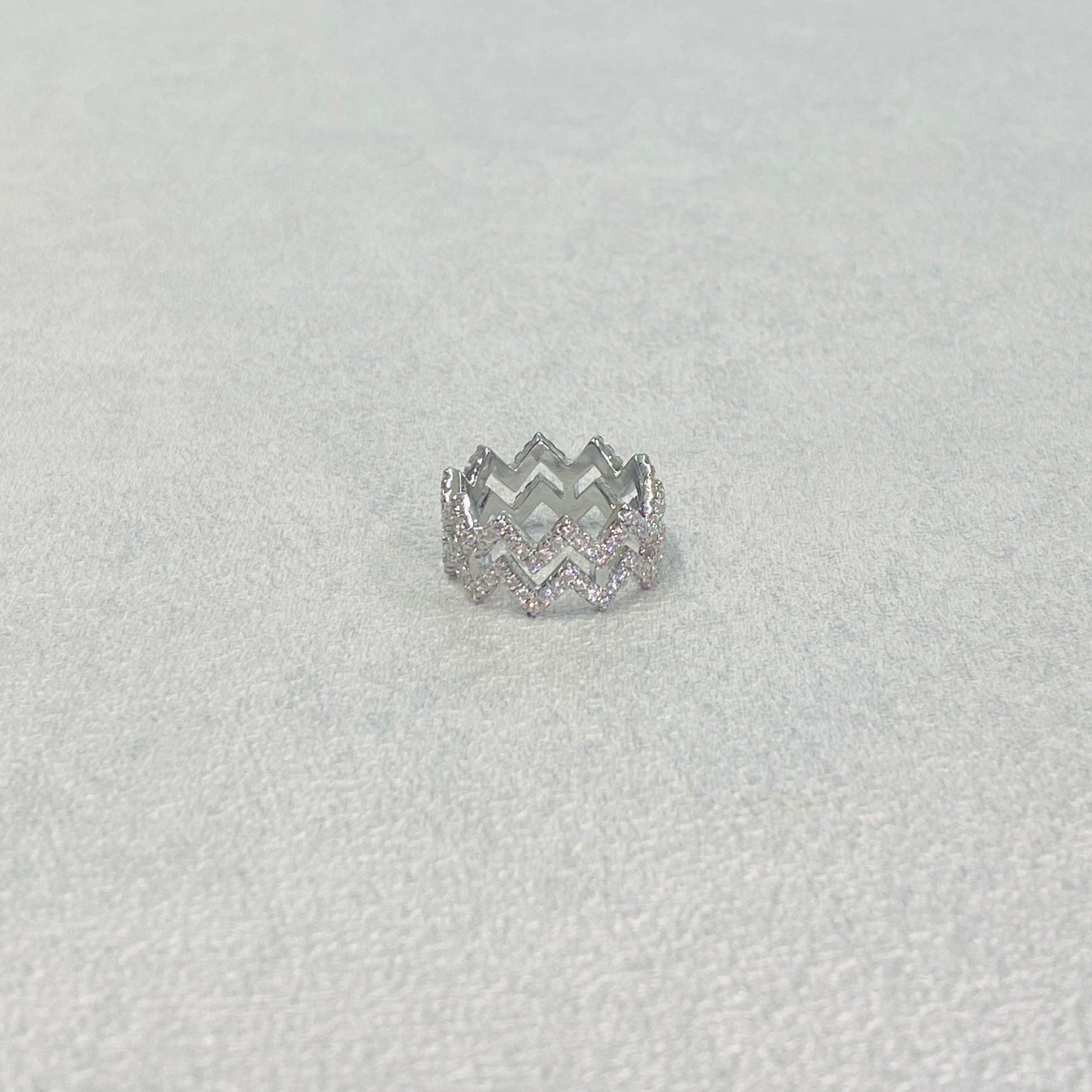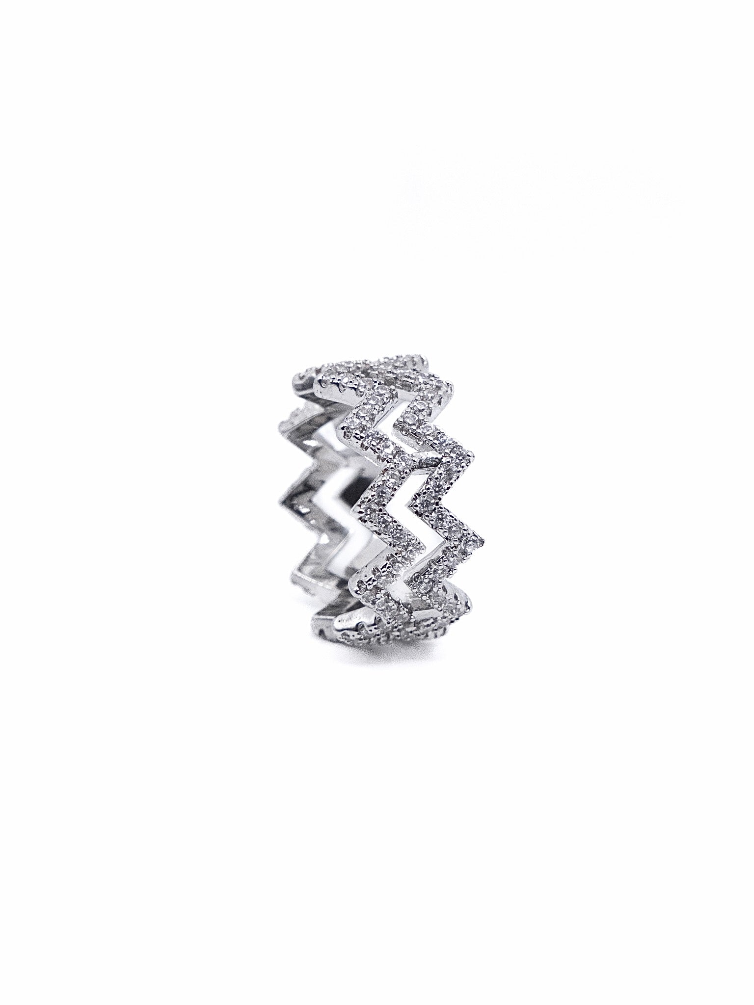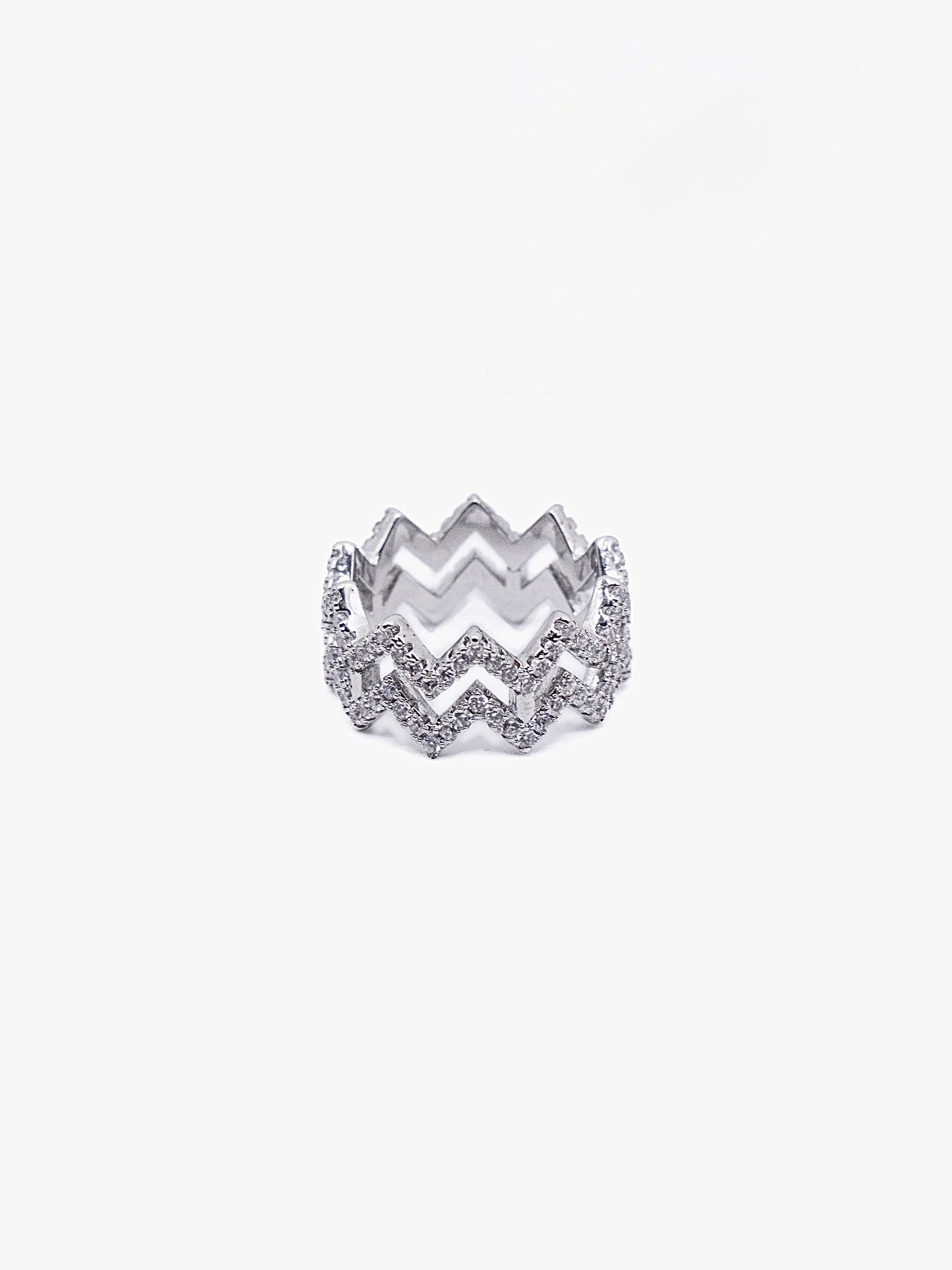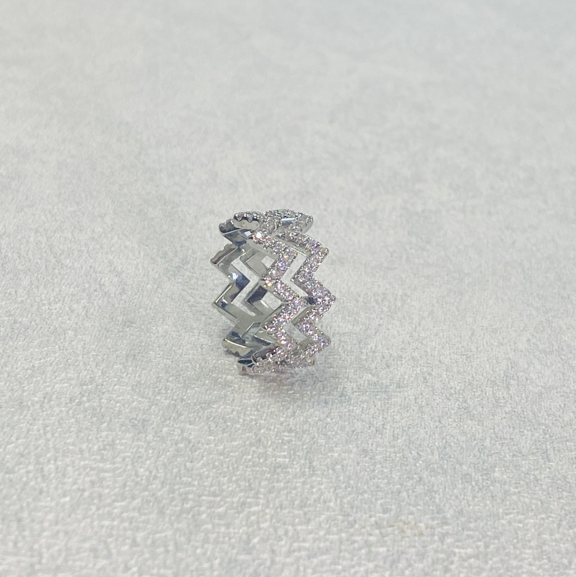 Stacked zig-zag bands form this bold ring—urban, dimensional, and high-impact.