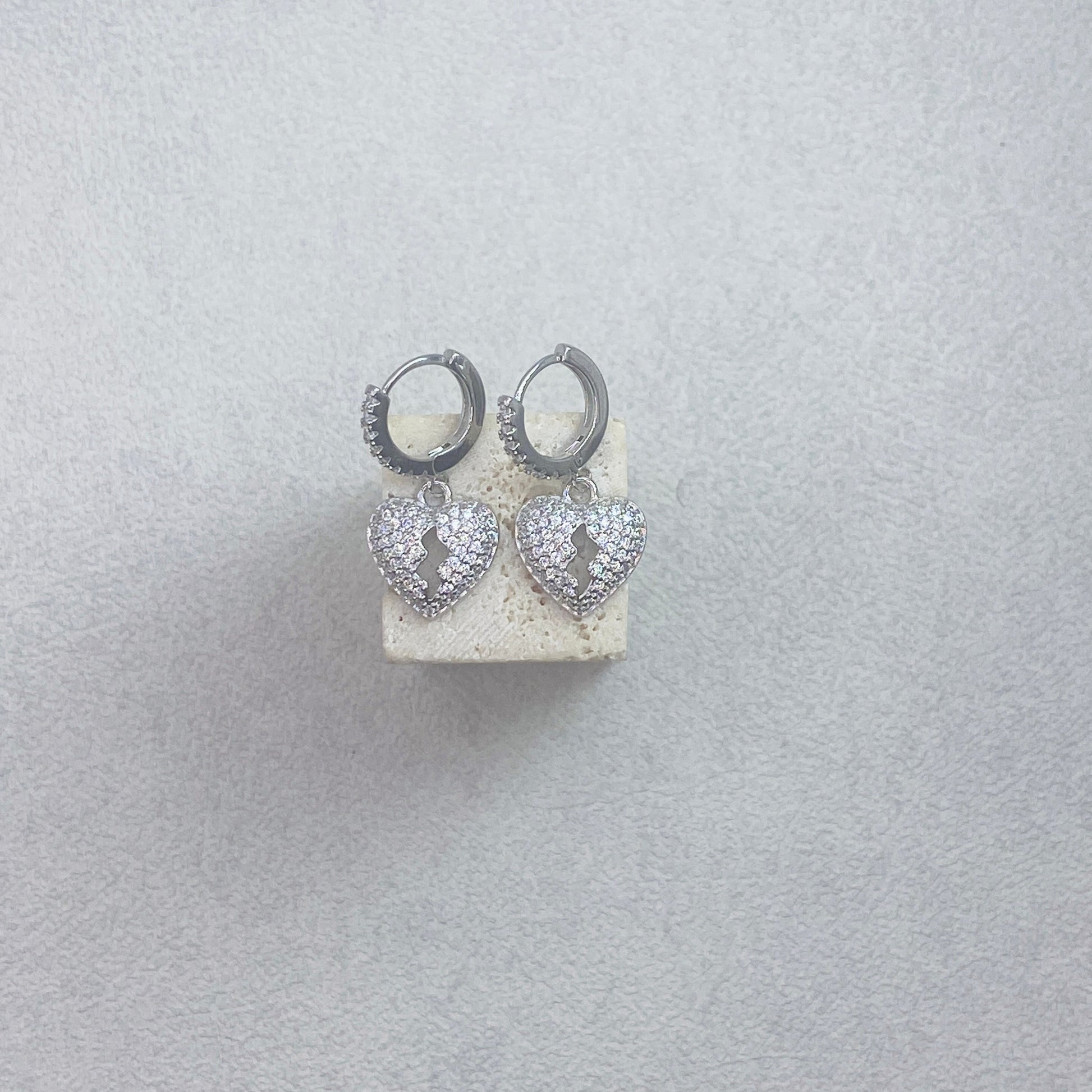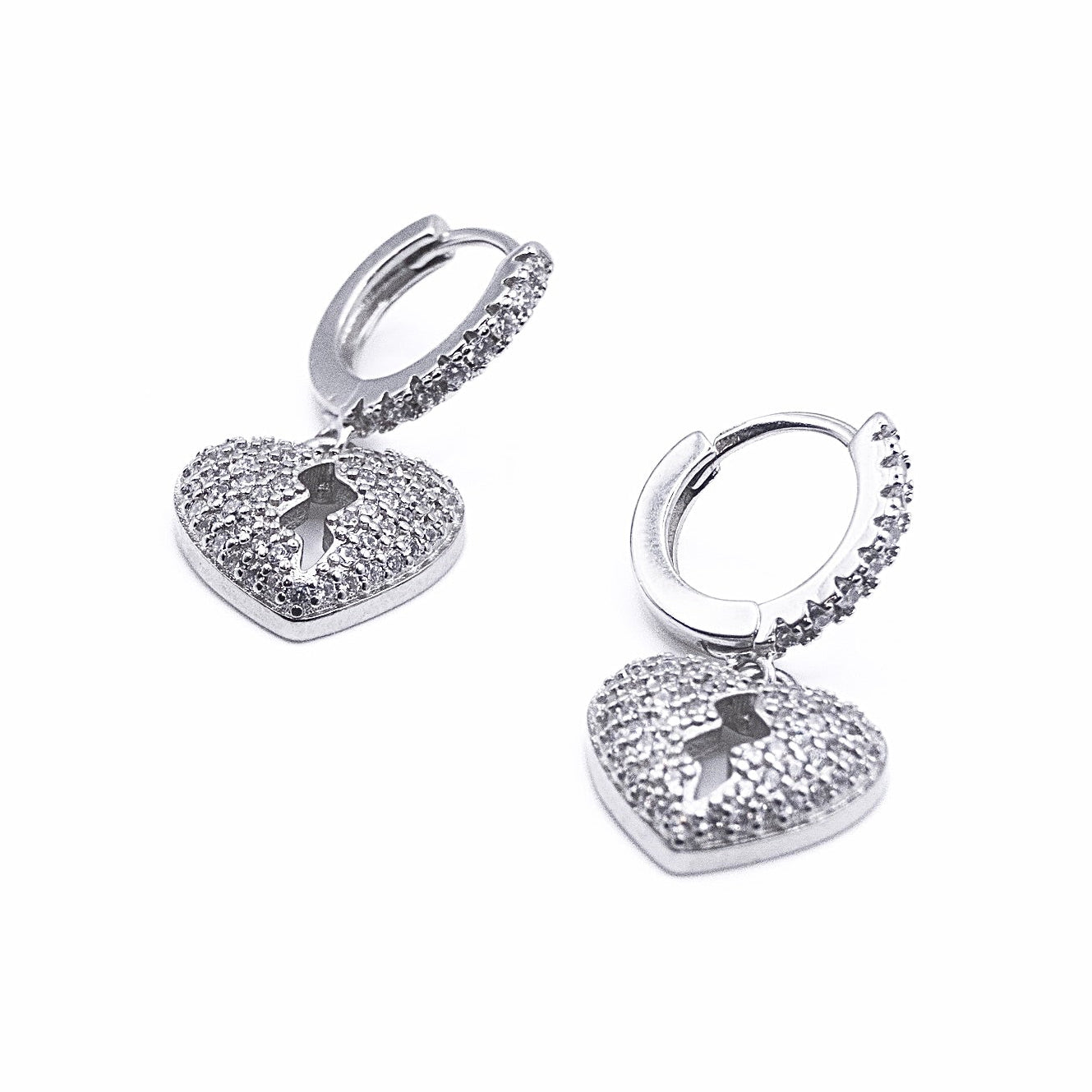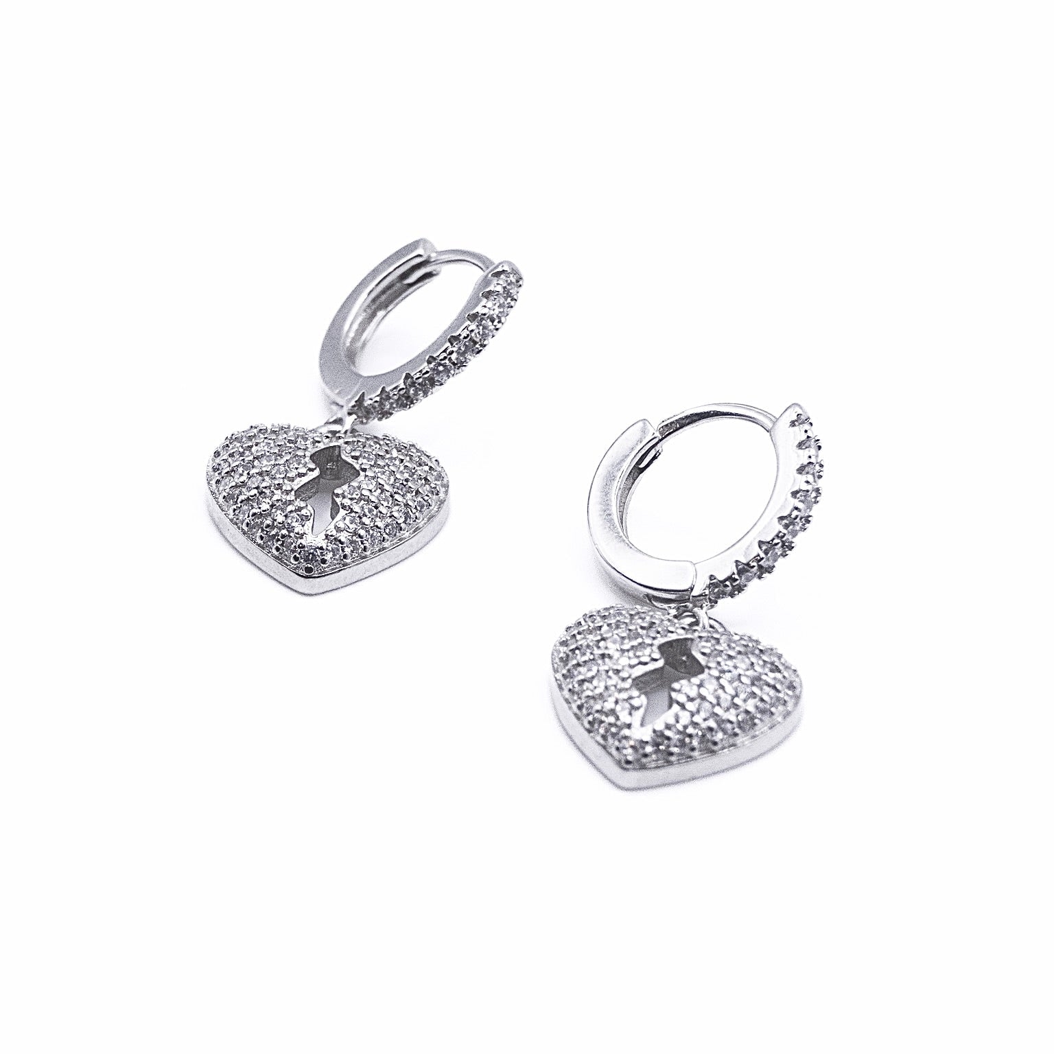 Dazzling heart-shaped drop earrings with intricate stone accents, with a dug out centre suspended from polished hoops for a romantic touch. Lightweight and comfortable, perfect for day-to-night wear