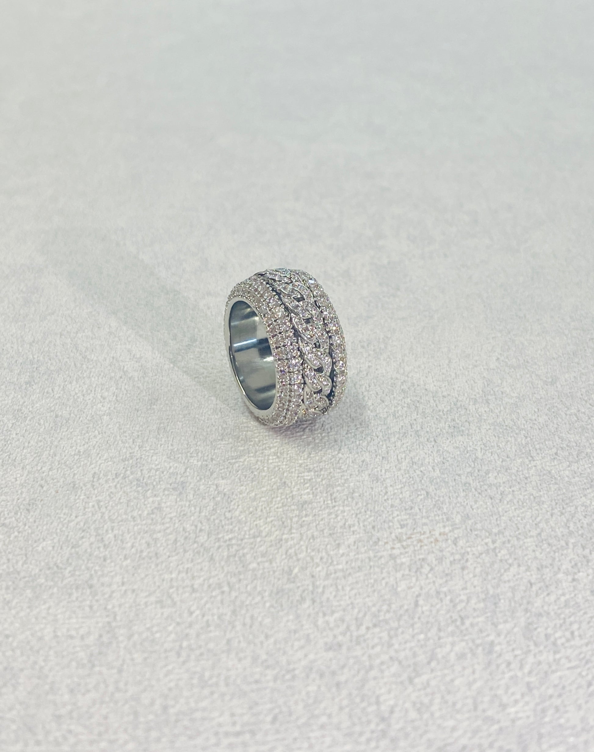 Expertly crafted with fluid, curved links and pave-set CZ stones for seamless shine. Features a spinning centered row.