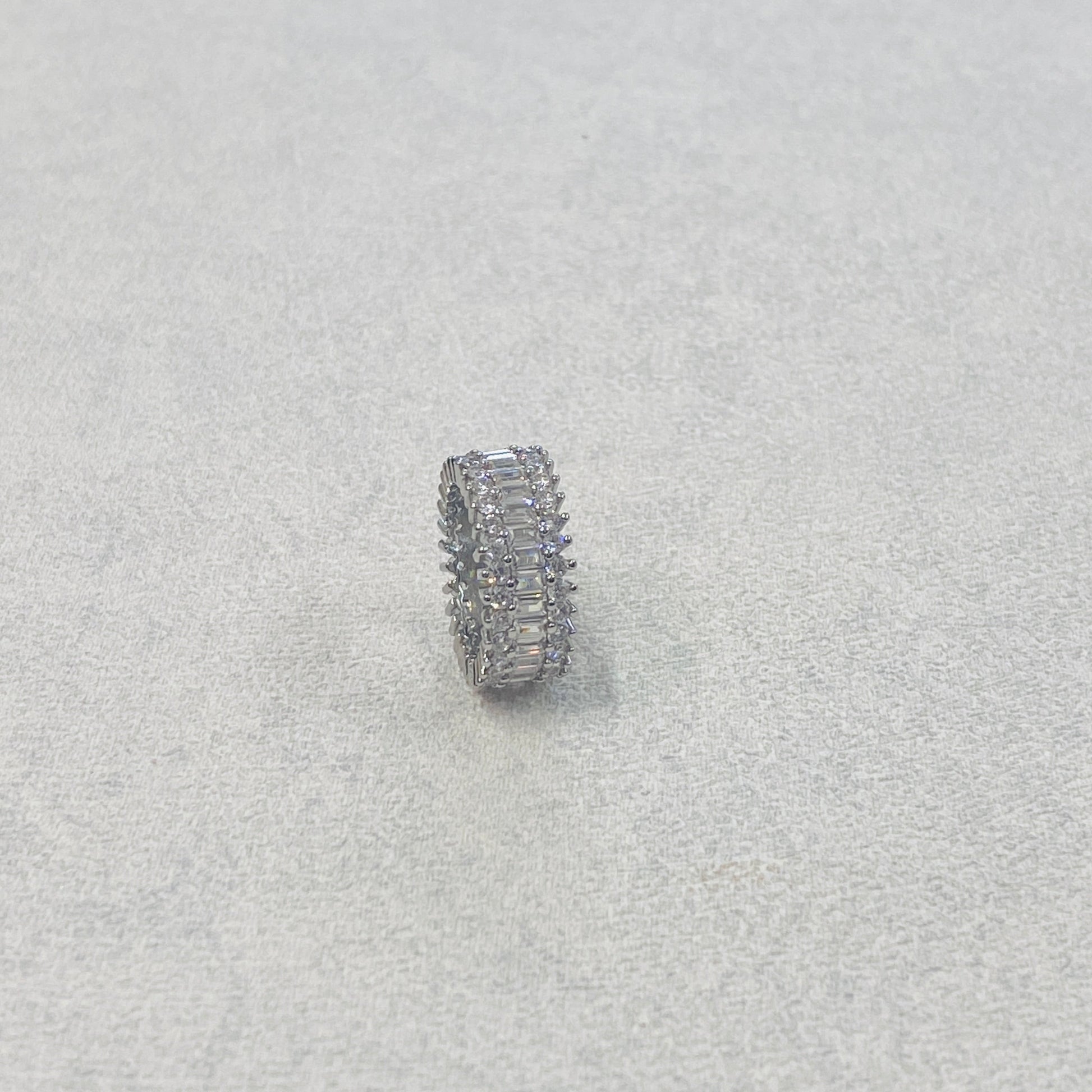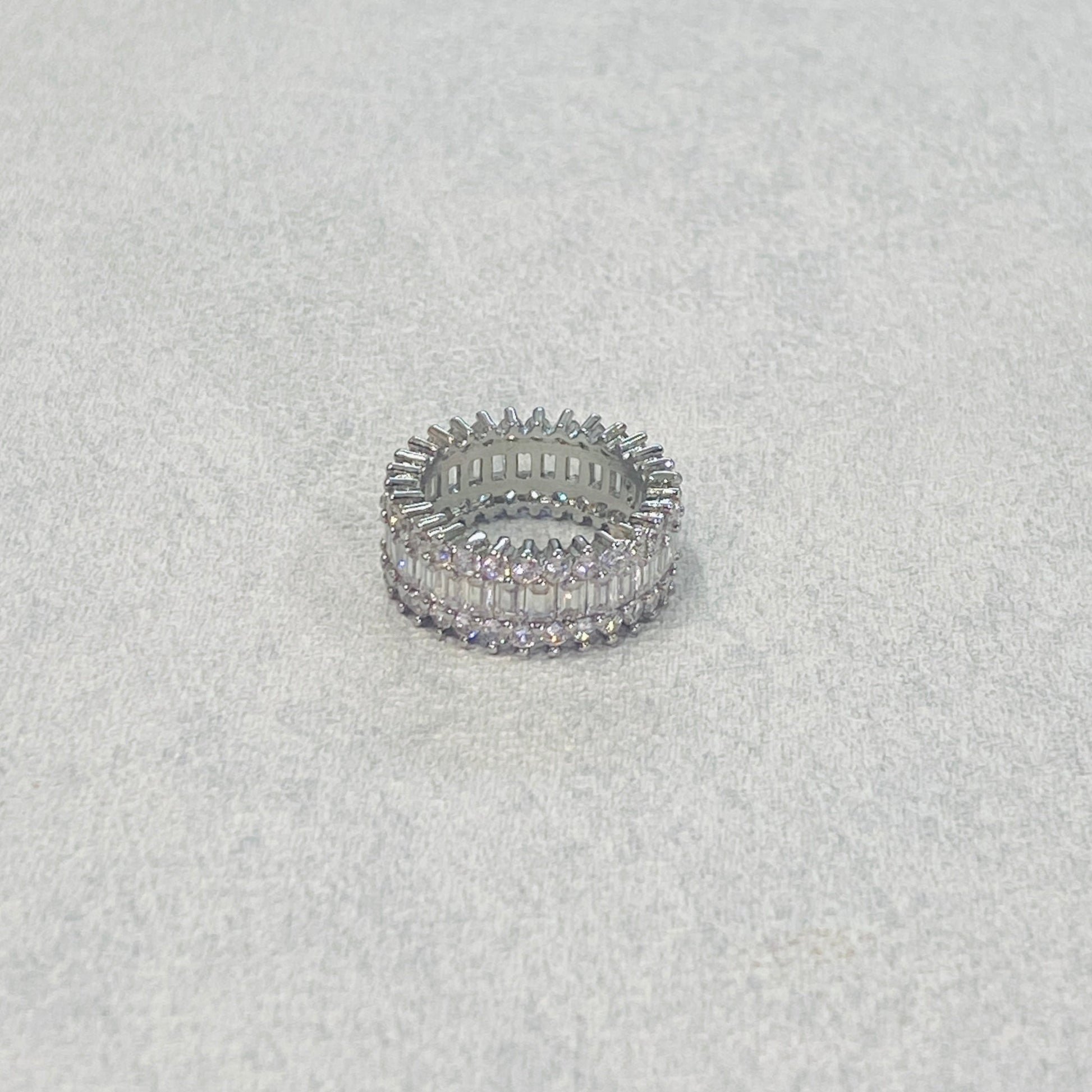 The sleek subtle design to the interior row makes this band a nice surprise to the wearer. Pair it with an evening or night out.